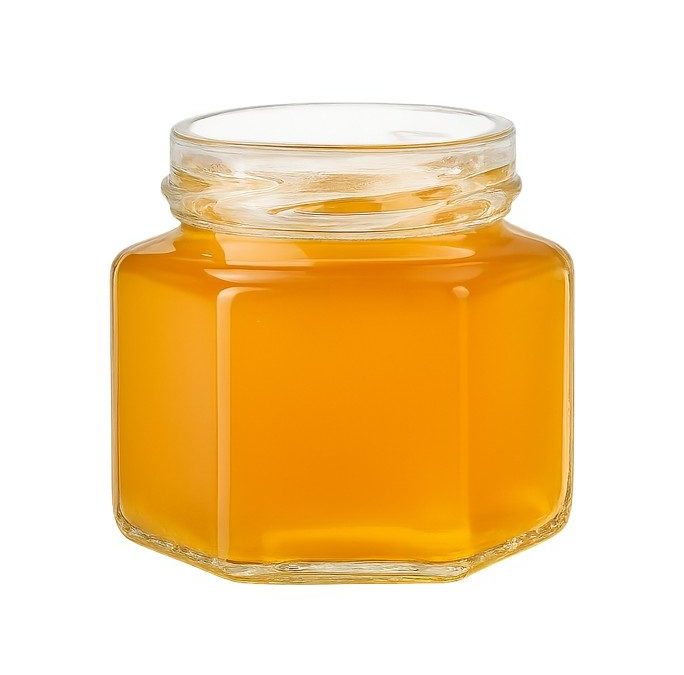 Pot verre hexagonal bague 53TO 105 mL Verre Blanc Hexagonale remplis miel